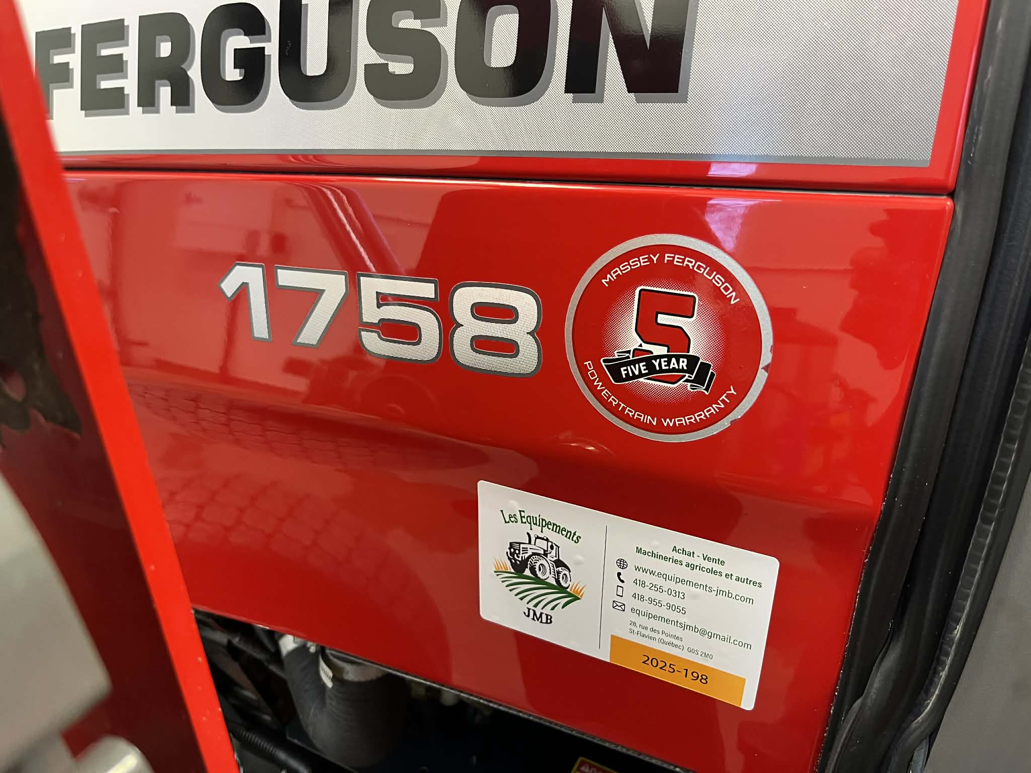 🚜 Tracteur agricole Massey Ferguson 1758HL année 2015 hydrostatique avec 2540 heures, 4 X 4, loader, bucket, 58 HP moteur; - hydrostatique avec 3 gammes de vitesse low-medium-hight; - 2 sorties hydrauliques; - loader quick attache; - bucket avec attache skid steer; - 3e fonction sur le loader déjà installé; - lumières arrières; - pneus gazon avec agri-lim dans roues arrières; - huiles moteurs, huiles à transmission, différentiel, filtre à air et filtre à fuel sont neufs. Possibilité de souffleur à neige neuf de 78 pouces de large. 👉 Demande 29 500.$ contactez Jean-Yves au📞4️⃣1️⃣8️⃣-9️⃣5️⃣5️⃣-9️⃣0️⃣5️⃣5️⃣ ou écrire en privé 💥Échange accepté. Livraison disponible. Financement disponible. 💥 Va voir notre site web www.equipements-jmb.com